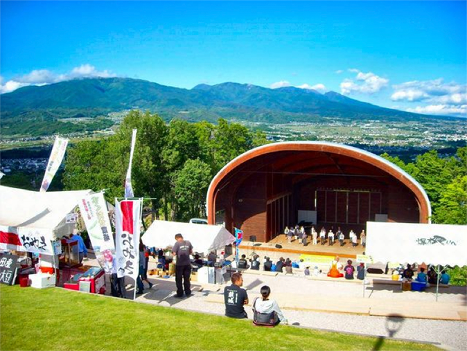 一般財団法人信州国際音楽村は開村30年を超える歴史ある音楽活動の施設。270度に広がるパノラマが舞台になっている野外ステージや木造音楽ホールこだまでは、近隣地域で活躍する様々な文化団体やグループが活動を繰り広げています。